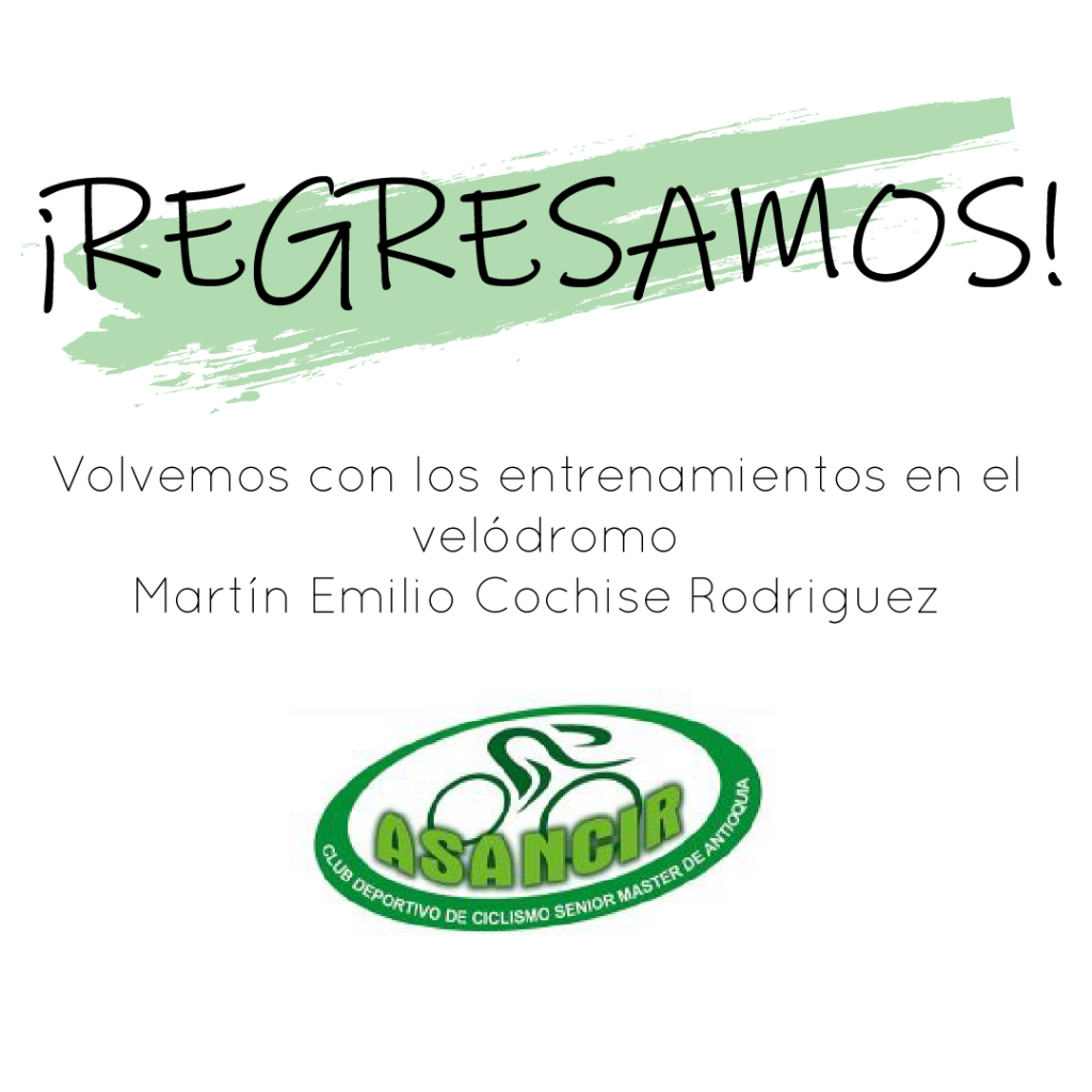 Con mucha felicidad y orgullo les contamos que podremos regresar a entrenar, por ahora en el velódromo municipal Martín Emilio Cochise Rodriguez , los días Martes y Jueves entre las 6:00 pm y las 8:00 pm. REQUISITOS PROTOCOLARIOS: 1. El máximo de personas por entrenamiento en la pista es de 6 ciclistas, cumpliendo un distanciamiento […]